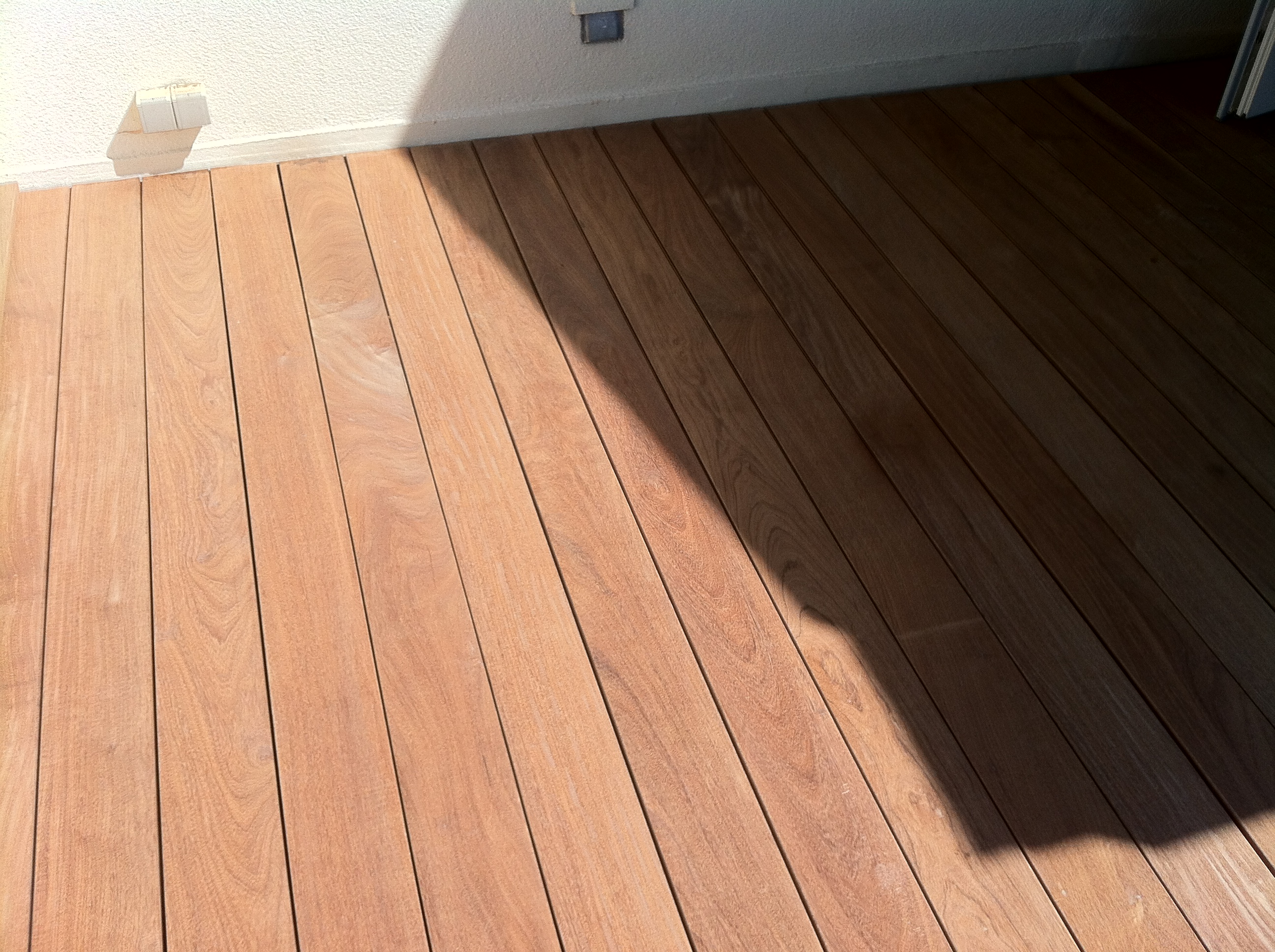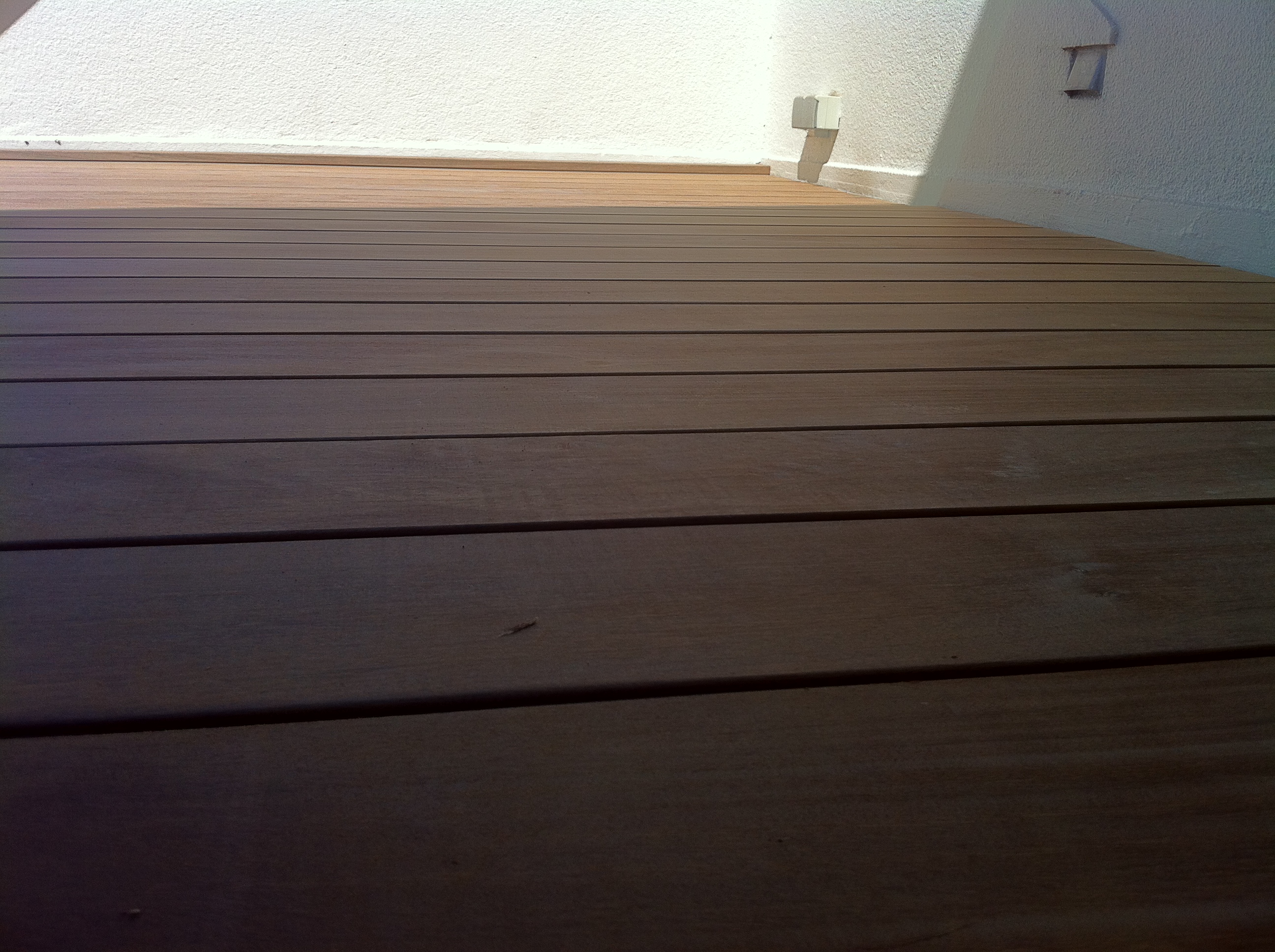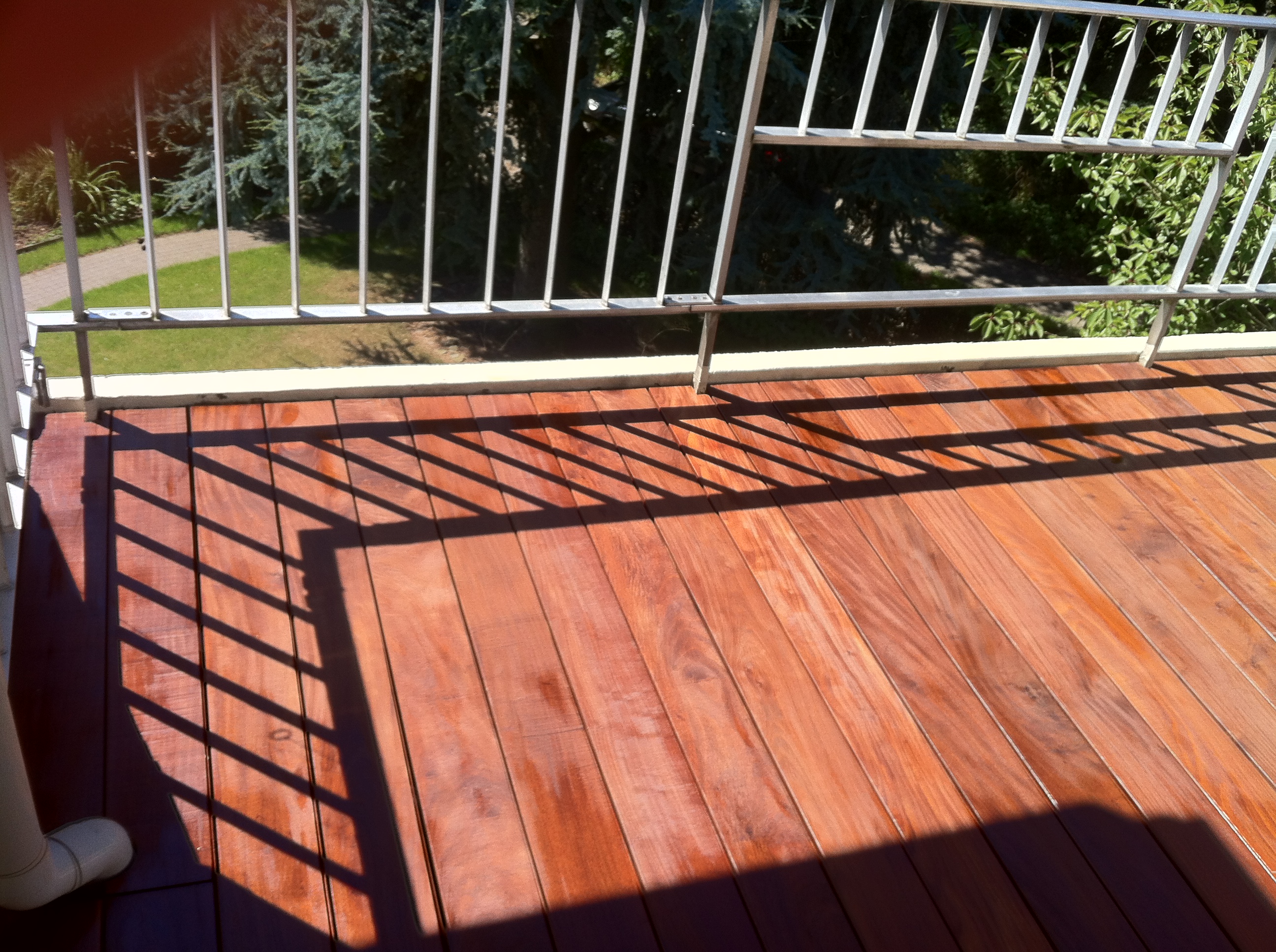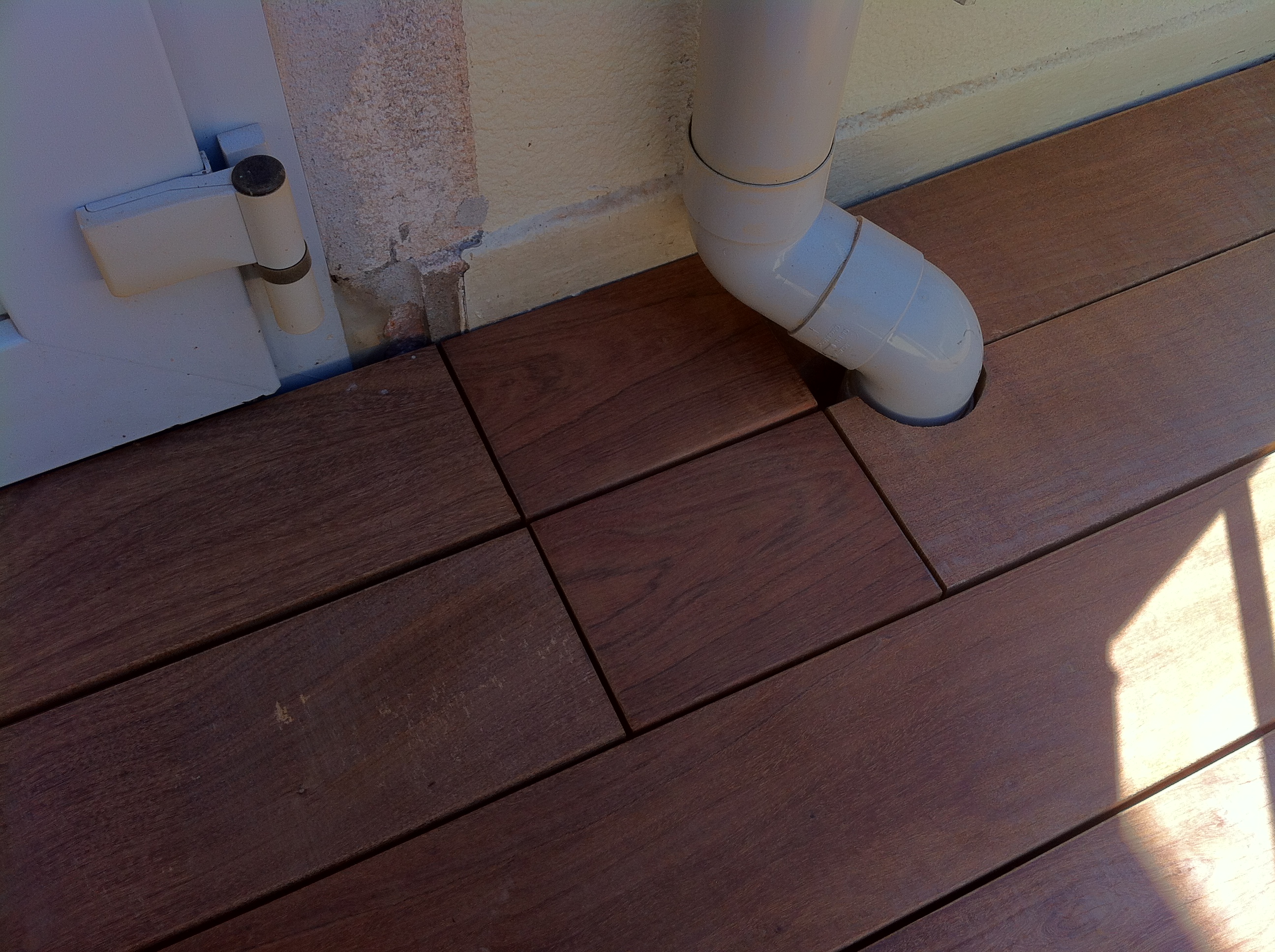 Aménagement d’une terrasse en bois exotique au dessus d’une couche d’étanchéité réalisée en Derbigum.